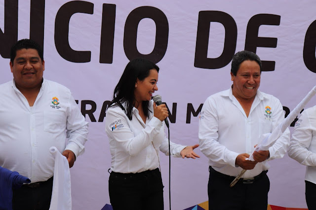 La alcaldesa Alicia Valdivia da banderazo a obra de pavimentación en la comunidad San José Tlapexcatl