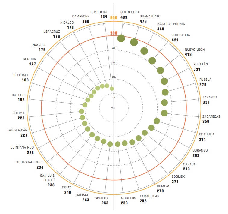 El estado con mayores avances hasta la fecha apenas alcanzó 483 puntos (Querétaro) y ocho entidades no superan siquiera los 200, donde Guerrero es el más bajo con 134.