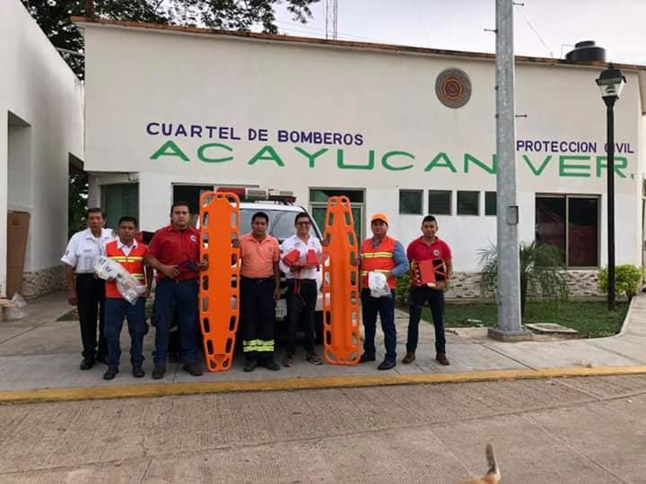 El regidor Eduardo Gómez Mariño hizo entrega de un kit de artículos de rescate a Protección civil y Bomberos de Acayucan.