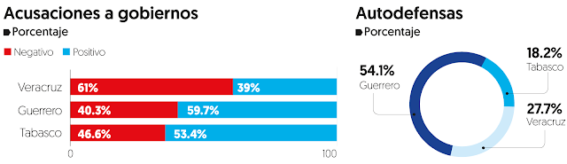 Además, Guerrero y Tabasco registraron porcentajes similares de 40.71 y 40.67 por ciento, respectivamente, debido principalmente a la difusión de casos de secuestro en algunos de sus municipios.