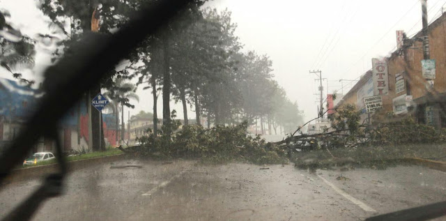 Usuarios en redes sociales reportan que el día de hoy en la capital del estado, debido a la lluvia se cayeron unos árboles en Homex, por lo tanto no hay paso.