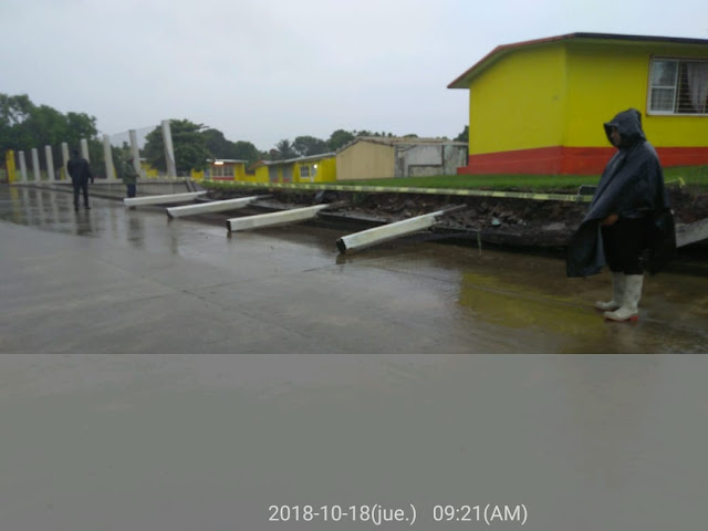 Colapsa parte de la barda perimetral de la escuela primaria "5 de Mayo" de Arroyo San Isidro, socavón a la altura del puente que une Tapalapan y Sinapan, a unos metros de la carretera 180. Tomar las medidas precautorias automovilistas y transeúntes.