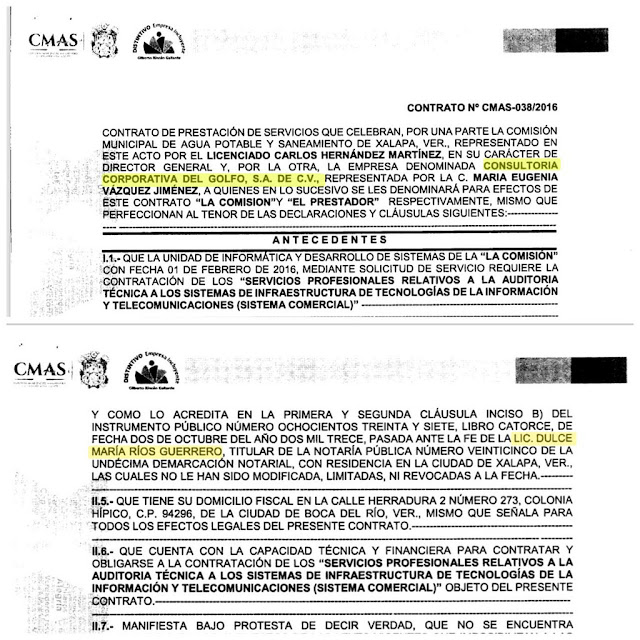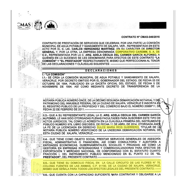 En el año 2013 la titular de la notaría número 25 de Xalapa, Dulce María Ríos Guerrero, fue la encargada de protocolizar dos de las empresas de Vázquez Jiménez, Corporativo Caremm S.A. de C.V. y Consultoría Corporativa del Golfo S.A. de C.V., como consta en los contratos celebrados con el gobierno del exgobernador Duarte y con el ayuntamiento de Xalapa, en ese entonces encabezado por Américo Zuñiga.