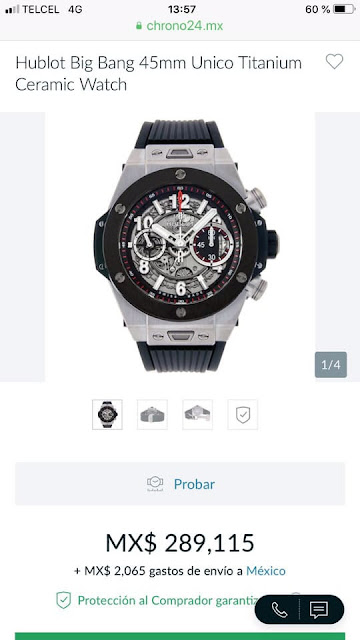 Este es el mismo reloj que trae Fernando Yunes Márquez y cuesta según la página Hublot Big Bang $289 mil 115 pesos.