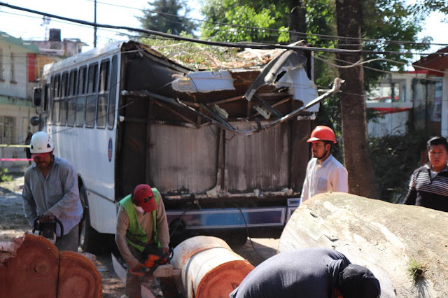 Debido a los vientos que azotaron esta mañana en la capital del estado un árbol cayó sobre una unidad de transporte público.
