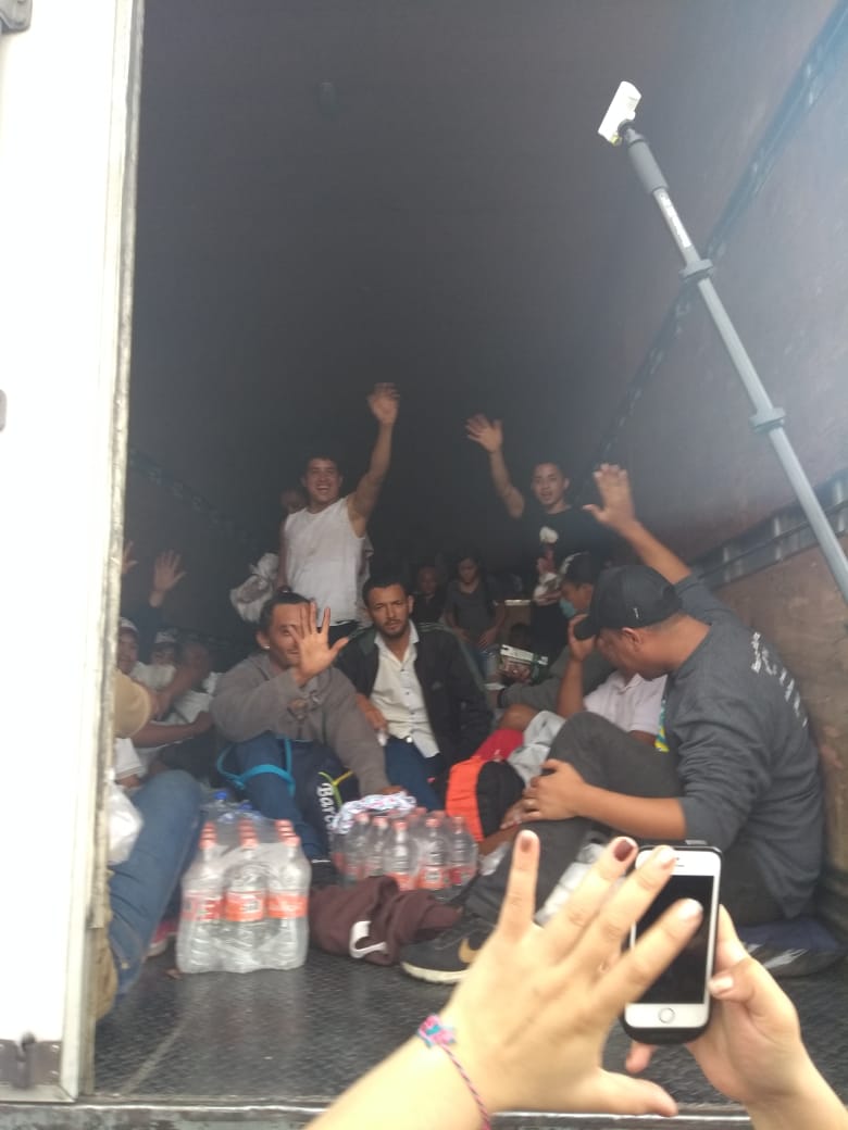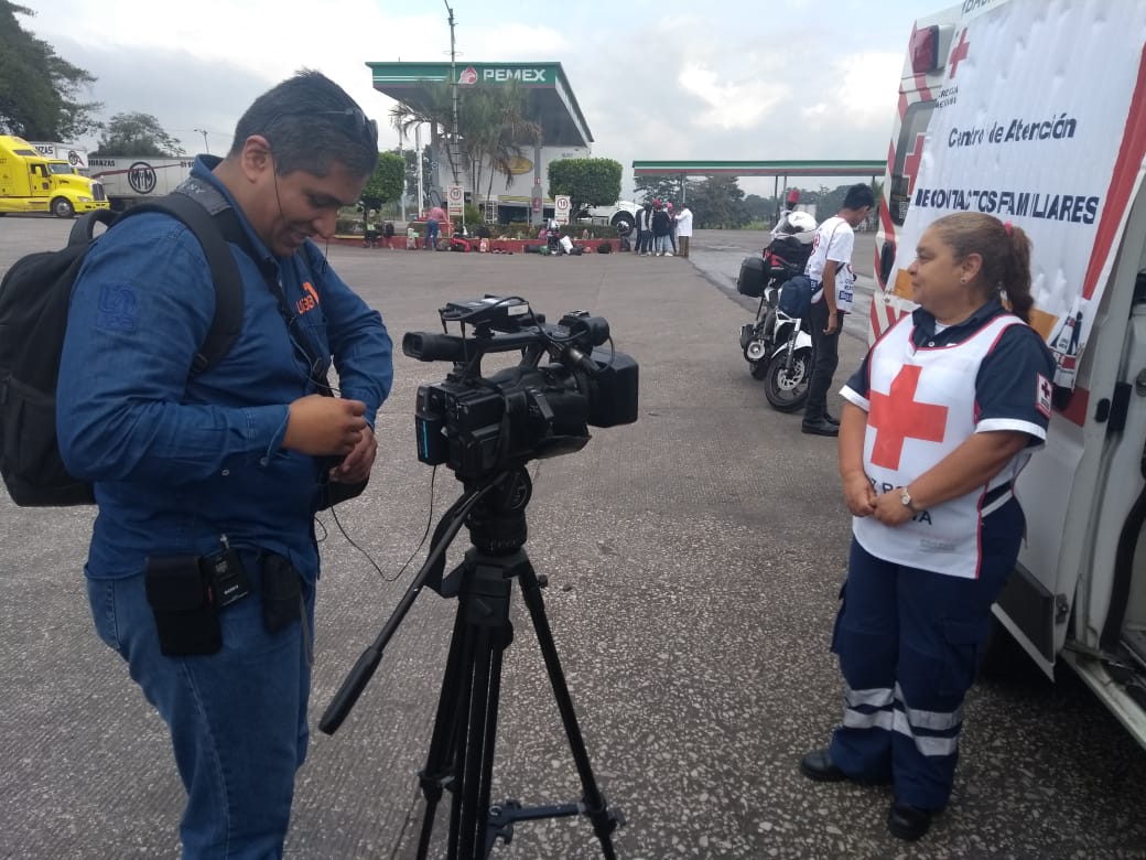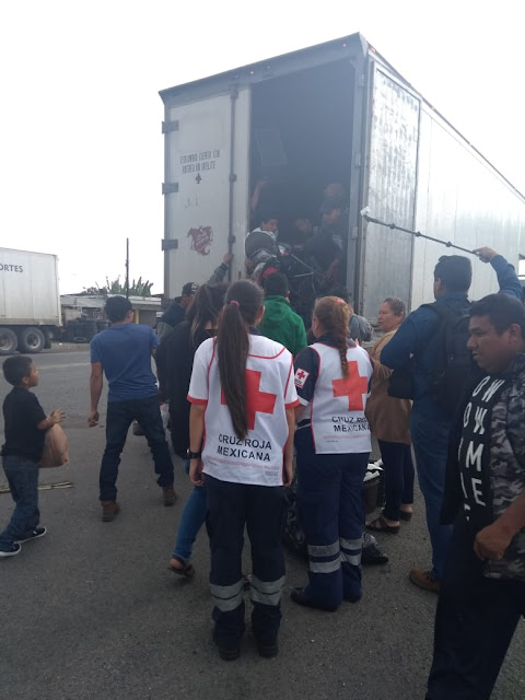 En Rancho Trejo, cerca de Córdoba, Cruz Roja, organizaciones civiles, la iglesia católica y protección civil apoyaron a los migrantes en su paso hacia Puebla.