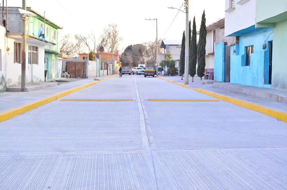 Esta obra constó de pavimentación a base de concreto hidráulico, banquetas, guarniciones y tomas domiciliarias.