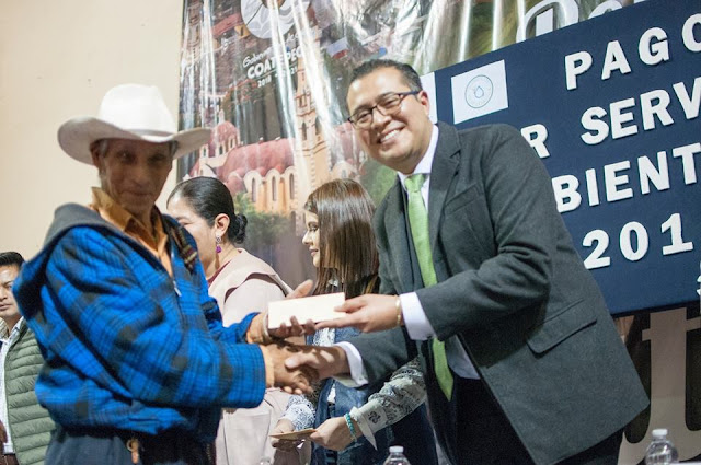 Este día FIDECOAGUA entregó 450 mil pesos a 107 ejidatarios o propietarios de terrenos, que ayudaron a preservar los bosques a través del programa denominado “Pago por Servicios Ambientales Hidrológicos 2018”.