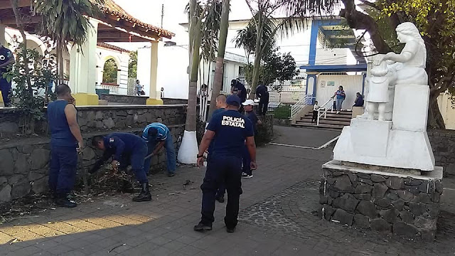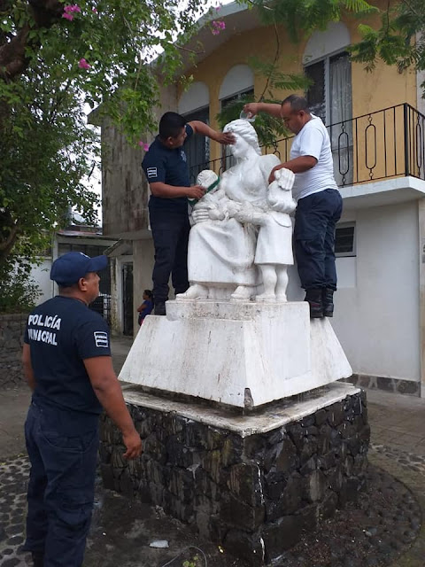 Por instrucciones del Presidente Municipal Licenciado Argeniz Vázquez Copete, oficiales de la Comandancia Municipal a cargo del Teniente Alberto Ignacio Velázquez, director de Seguridad Pública municipal, realizaron trabajos de limpieza, mantenimiento y encalado a los espacios públicos ubicados a un costado de la Comandancia, como la Casa del Fandango, el Monumento a la Madre y alrededor de la escuela primaria Juana B. De Carvajal.