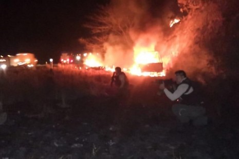 Ya por la tarde, al menos cinco tráileres fueron incendiados en la carretera federal Córdoba-Veracruz, a la altura de la localidad de La Luz. Las unidades presentaban pintas con las iniciales de esa organización.