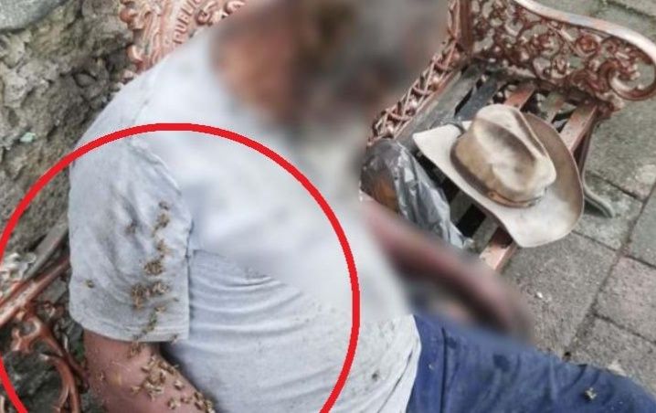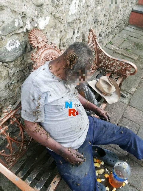 De acuerdo con testigos, la víctima permaneció inerte durante varios minutos sentado en una banca mientras las abejas le caminaban en todo el cuerpo.
