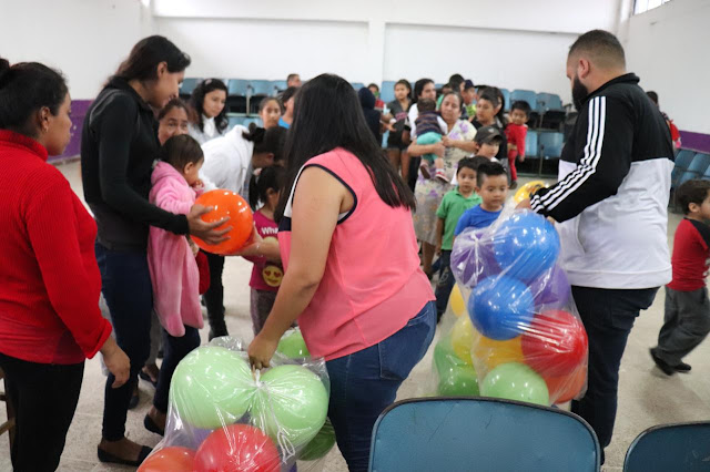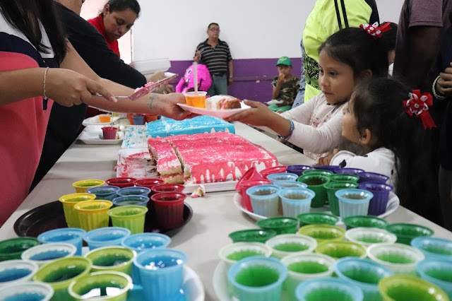 Todos los niños que asistieron a la celebración recibieron pelotas, juguetes, pastel, gelatinas, aguas de sabores y deliciosos pambacitos.