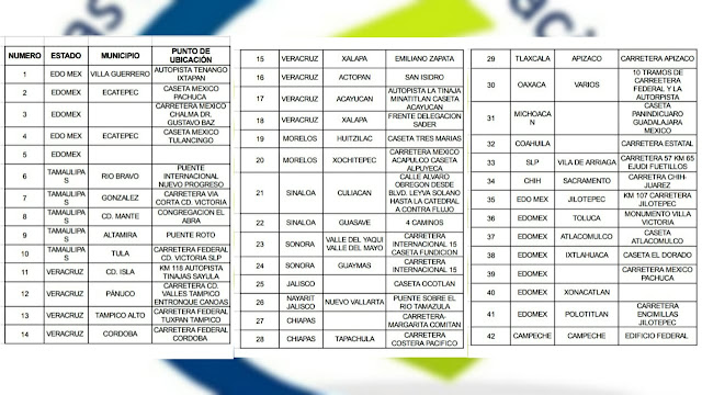 Aquí en el Estado los bloqueos serán en las carreteras, en Ciudad Isla en el kilómetro 118 de la autopista Tinajas Sayula, en Panúco en la carretera Valles Tampico, entronque canoas, En Tampico alto, carretera federal Tuxpan Tampico, en Córdoba carretera federal a Córdoba, en Xalapa, carretera a Emiliano Zapata, en Actopan, en San isidro, Acayucan, autopista la Tinaja, Minatitlán caseta Acayucan, y en Xalapa, frente a la delegación de SADER.