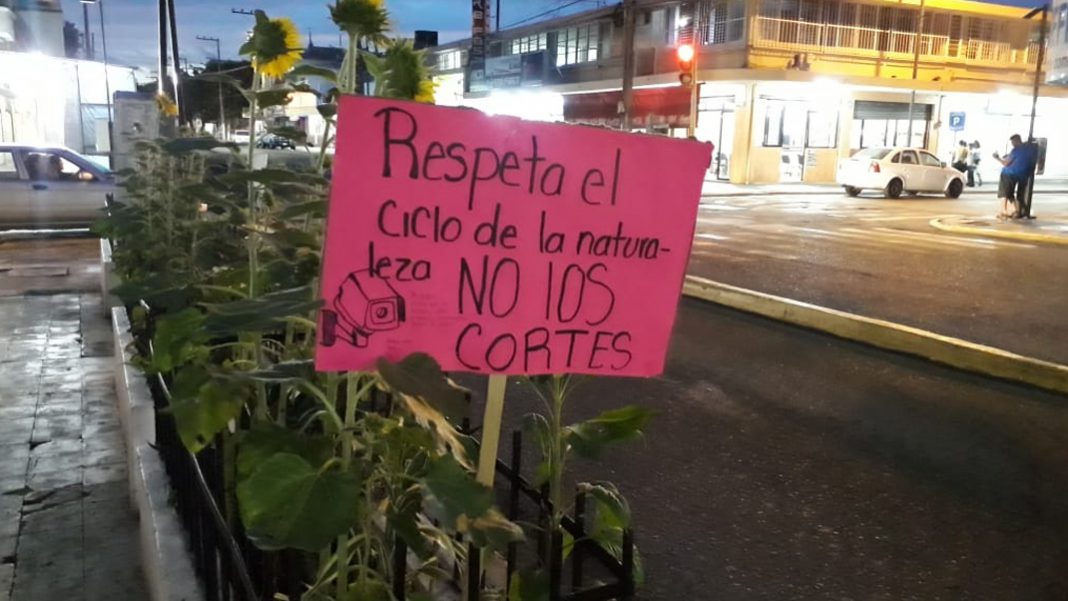 Mientras tanto en el lugar donde se ubican las jardineras con las flores, los encargados colocaron letreros para tratar de que más personas no abusen y roben lo que no es suyo.