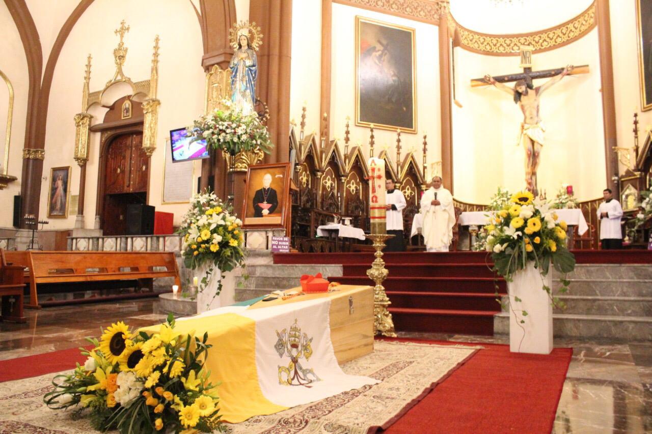 Como fue una de sus voluntades, llego a su amada catedral, en una caja humilde de madera que fue depositada en el suelo tal como lo pidió. Sus familiares profundamente afectados y con la tristeza marcada en sus rostros, cargaron el ataúd hasta la entrada de la catedral, donde ya lo esperaban sacerdotes de diversas iglesias, quienes bendijeron el ataúd, para luego ser llevado al altar y fue colocado sobre una alfombra.