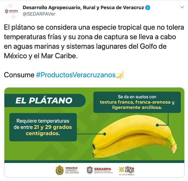 La Secretaría de Desarrollo Agropecuario, Rural y Pesca (Sedarpa) de Veracruz compartió un curioso mensaje a través de sus redes sociales, en el cual asegura que el plátano puede ser capturado en aguas marinas.