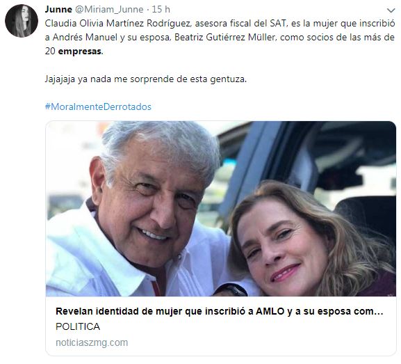 En este contexto, llamó la atención que Claudia Olivia Martínez Rodríguez, asesora fiscal integral del SAT en la entidad, fue la funcionaria que dio de alta a Andrés Manuel López Obrador y a su esposa como socios de las 26 compañías.