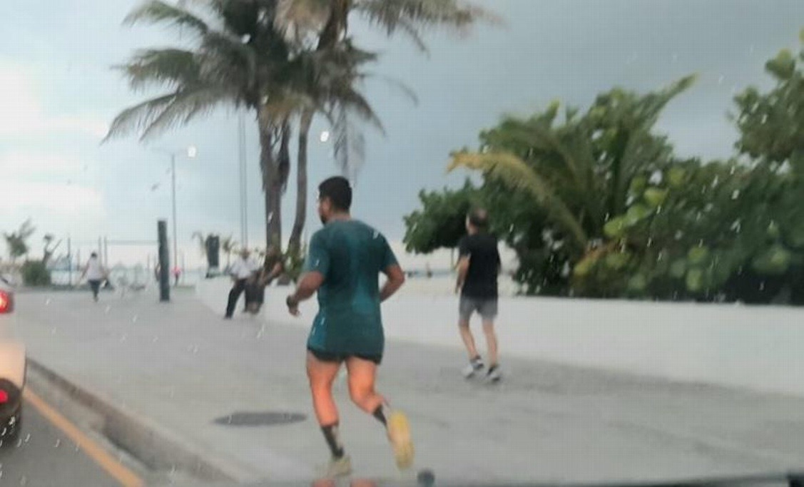 Acompañado por su hijo, el alcalde Fernando Yunes Linares y su personal de seguridad, el ex mandatario estatal realizó deporte en esta zona costera de la ciudad, previo a la fuerte lluvia que se registró en la conturbación.