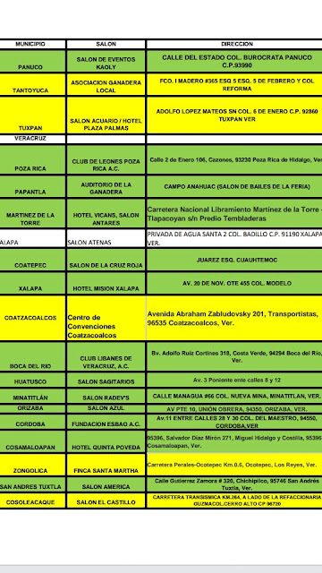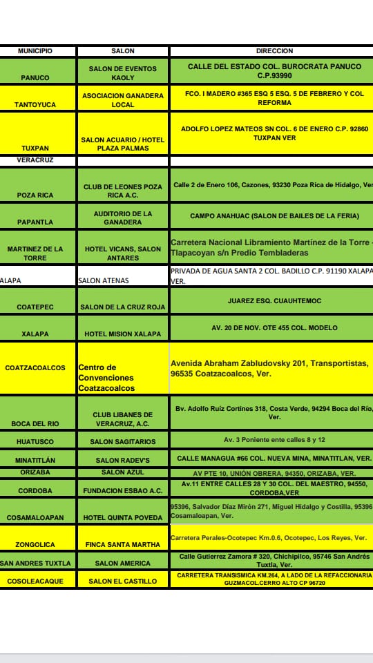 ACATLAN, ACTOPAN, ALTO LUCERO DE GUTIERREZ BARRIOS, LA ANTIGUA, APAZAPAN, TLALTETELA, CHICONQUIACO, EMILIANO ZAPATA, JALCOMULCO, XALAPA, JUCHIQUE DE FERRER, LANDERO Y COSS, MIAHUATLAN, NAOLINCO, PUENTE NACIONAL, TENAMPA, TEPETLAN, TLACOTEPEC DE MEJIA, TONAYAN, TOTUTLA, URSULO GALVAN, YECUATLA.