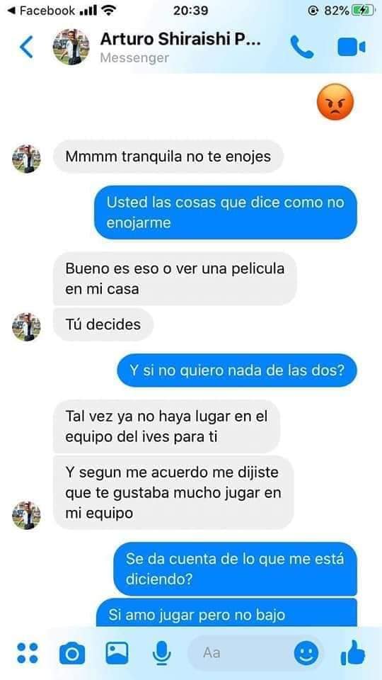 La chica, de 17 años de edad, difundió la conversación de Facebook a través de que, el coach Arturo Shiraishi Ponce le pide que se tome fotografías sin ropa solo para él.