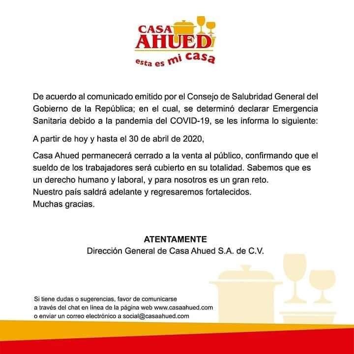 El Administrador General de Aduanas, Ricardo Ahued Bardahuil, anunció el cierre de sus tiendas en Xalapa debido al coronavirus a partir de este martes hasta el 30 de abril.