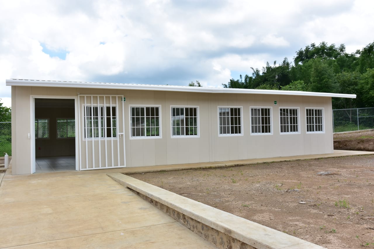 Consta de seis aulas didácticas, salón de usos múltiples, dos direcciones, patio cívico, malla perimetral, áreas de servicios sanitarios que incluyen bebedores e instalaciones para personas con discapacidad.