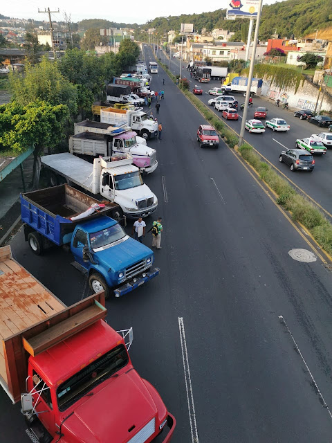 Integrantes de la alianza de Mexicana de Organización de Transportistas AC (AMOTAC), realizaron un plantón – manifestación estacionando sus unidades sobre acotamiento en Banderilla a la altura Pemex.