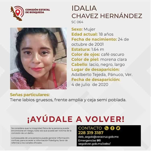 La joven Idalia Chávez Hernández de 18 años se encuentra desaparecida desde el pasado 4 de julio, familiares y amigos piden ayuda para dar con su paradero.