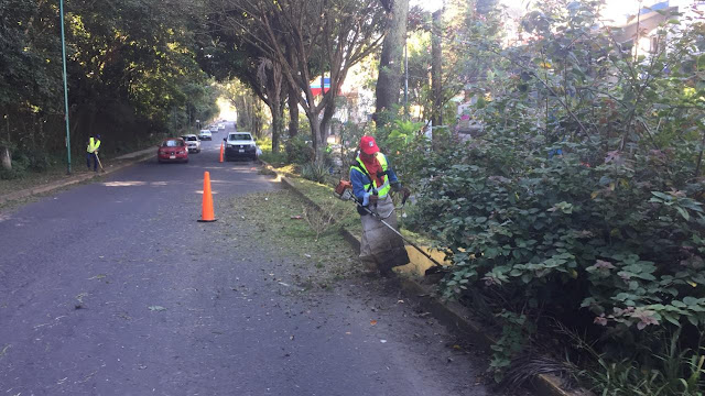 Con la finalidad de continuar con los trabajos de mantenimiento en las áreas verdes, el Departamento de Mantenimiento Ambiental de Parques y Jardines realiza actividades de chapeo y limpieza.