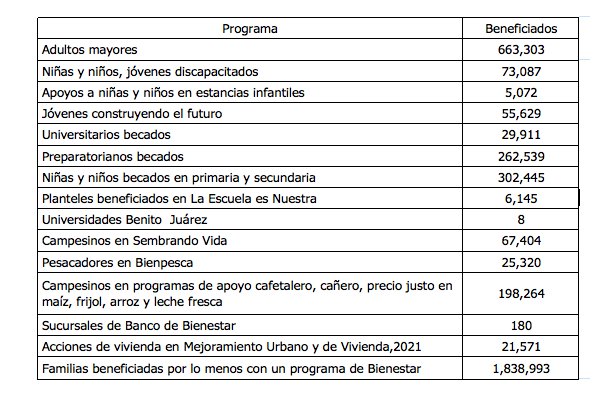 En la Cámara de Diputados seguiré apoyando estos Programas de Bienestar que constituyen un pilar en la estrategia de combate a la desigualdad social, sectorial y regional. En el paquete fiscal de 2021 se sostienen estos programas y se incrementan en términos inflacionarios, a pesar de las dificultades que existen en la economía por la emergencia sanitaria, lo cual constituye una diferencia sustancial respecto a los gobiernos anteriores, que a la primera vista de una crisis económica recurrían a disminuir los programas sociales y a proteger los intereses de los sectores económicamente más poderosos.