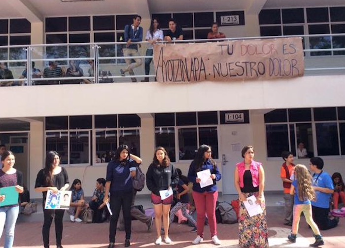 Los universitarios portaron las fotografías de los 43 normalistas desaparecidos. Foto: Twitter @jurgenmusic18