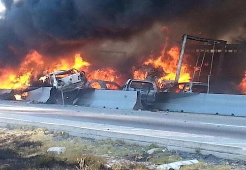 Aún a la espera de los reportes que arrojen el peritaje del siniestro, testigos presenciales afirmaron que la colisión de unidades, podría haberse derivado del intenso humo que había en la zona por la quema de pastizales, hecho que impedía la adecuada visibilidad de los autos que transitaban por la autopista.