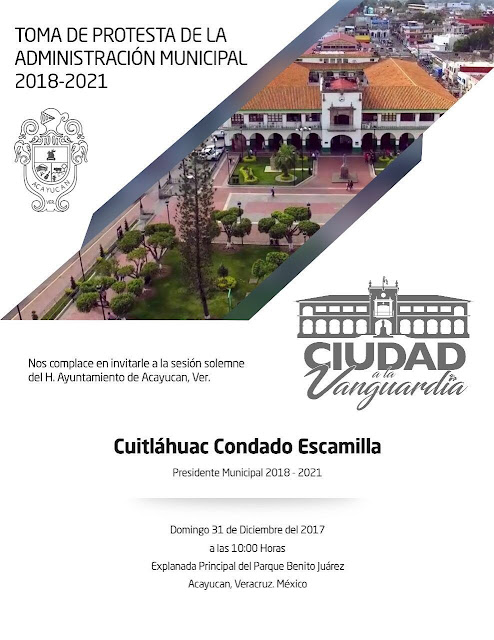 Invitación a la toma de protesta de Cuitláhuac Condado Escamilla, Presidente Municipal de Acayucan
