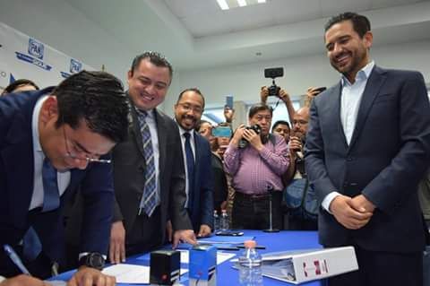 Con ello, el alcalde cumplió con los requisitos marcados en la convocatoria emitida por el albiazul, por lo que recibió la constancia de registro como precandidato a la gubernatura.