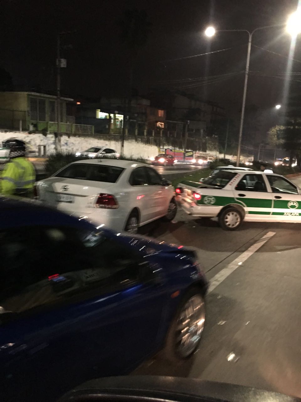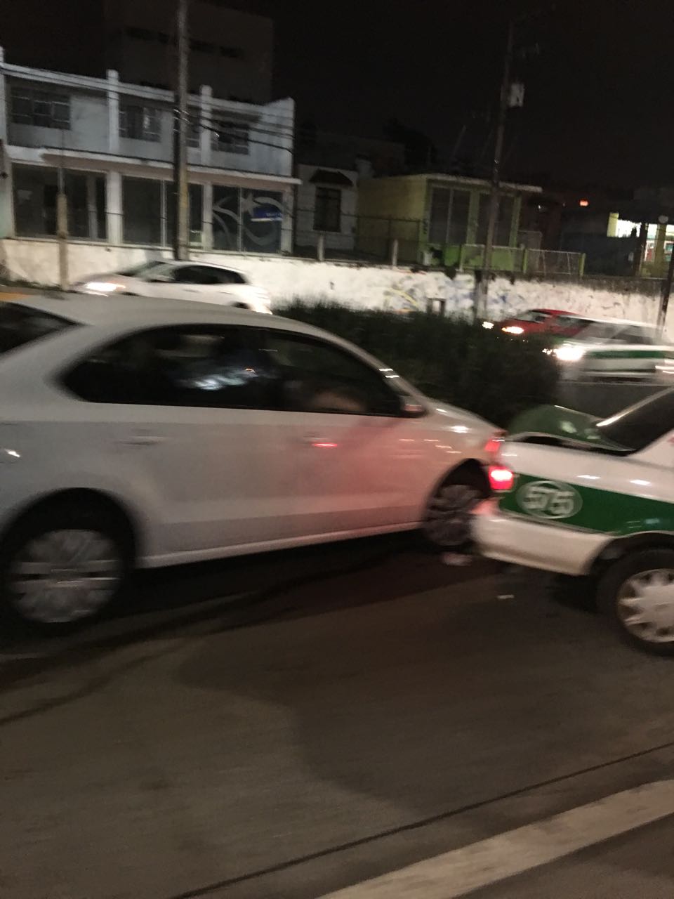 Una persona que conducía un auto de marca Volkswagen de modelo reciente, impactó por alcance a un vehículo del servicio público en su modalidad taxi, provocó un aparatoso accidente.