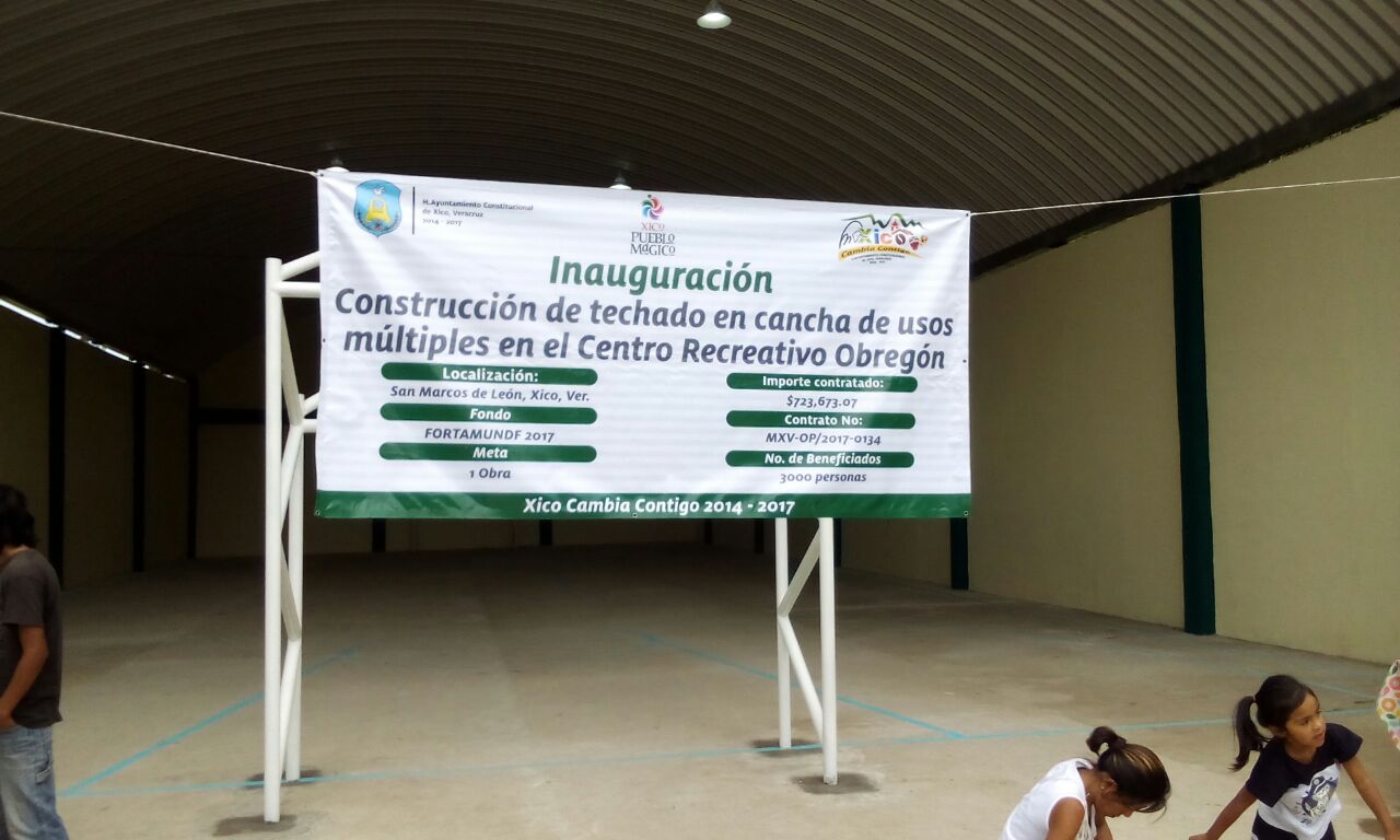 El Presidente Municipal de Xico, Ing Lorenzo Pozos Itza, acompañado de autoridades municipales, llevó a cabo el corte de listón para la inauguración formal del techado de la cancha de usos múltiples del Centro Recreativo Obregón en la localidad de San Marcos de León.