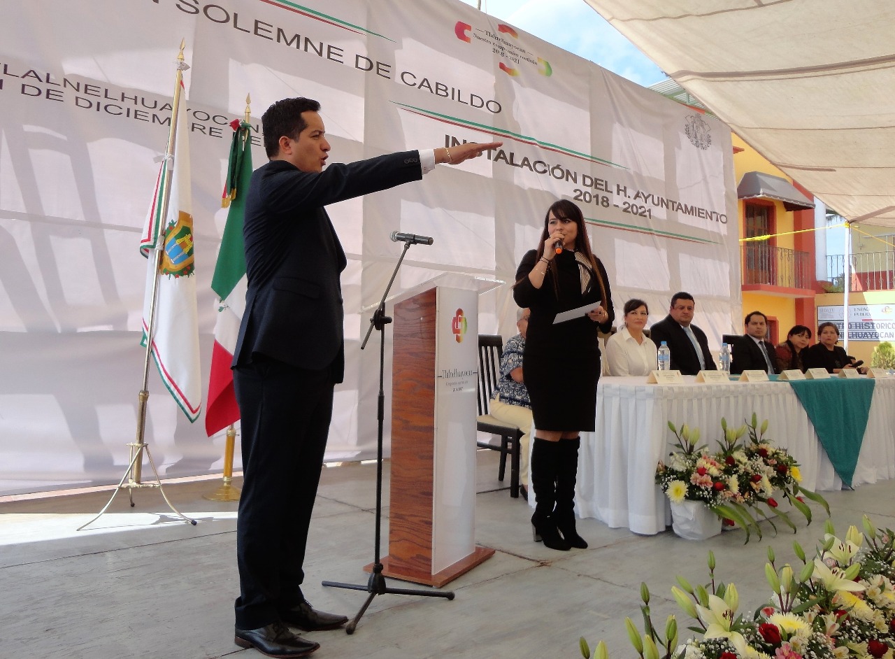 Ante cientos de ciudadanos que se dieron cita en la explanada del Palacio Municipal, este 31 de diciembre de 2017, el maestro David Ángeles Aguirre, rindió protesta como nuevo presidente municipal de Tlalnelhuayocan, el nuevo alcalde estuvo acompañado por los integrantes de su Cabildo, la síndica Apolonia Domínguez Hernández y la regidora Aurea Gerón Contreras.