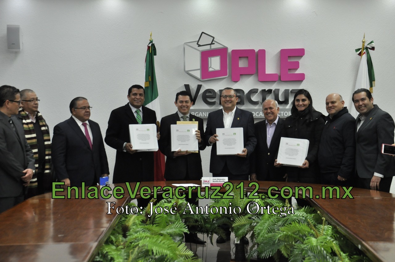 Renato Alarcón Guevara dirigente del Partido Revolucionario Institucional (PRI) y Carlos Marcelo Ruiz Sánchez Vocero del Partido Verde Ecologista de México (PVEM) presentaron el registro de la coalición "Por un Veracruz Mejor" ante el OPLE exigieron “piso parejo” en el actual proceso y jornada electoral.
