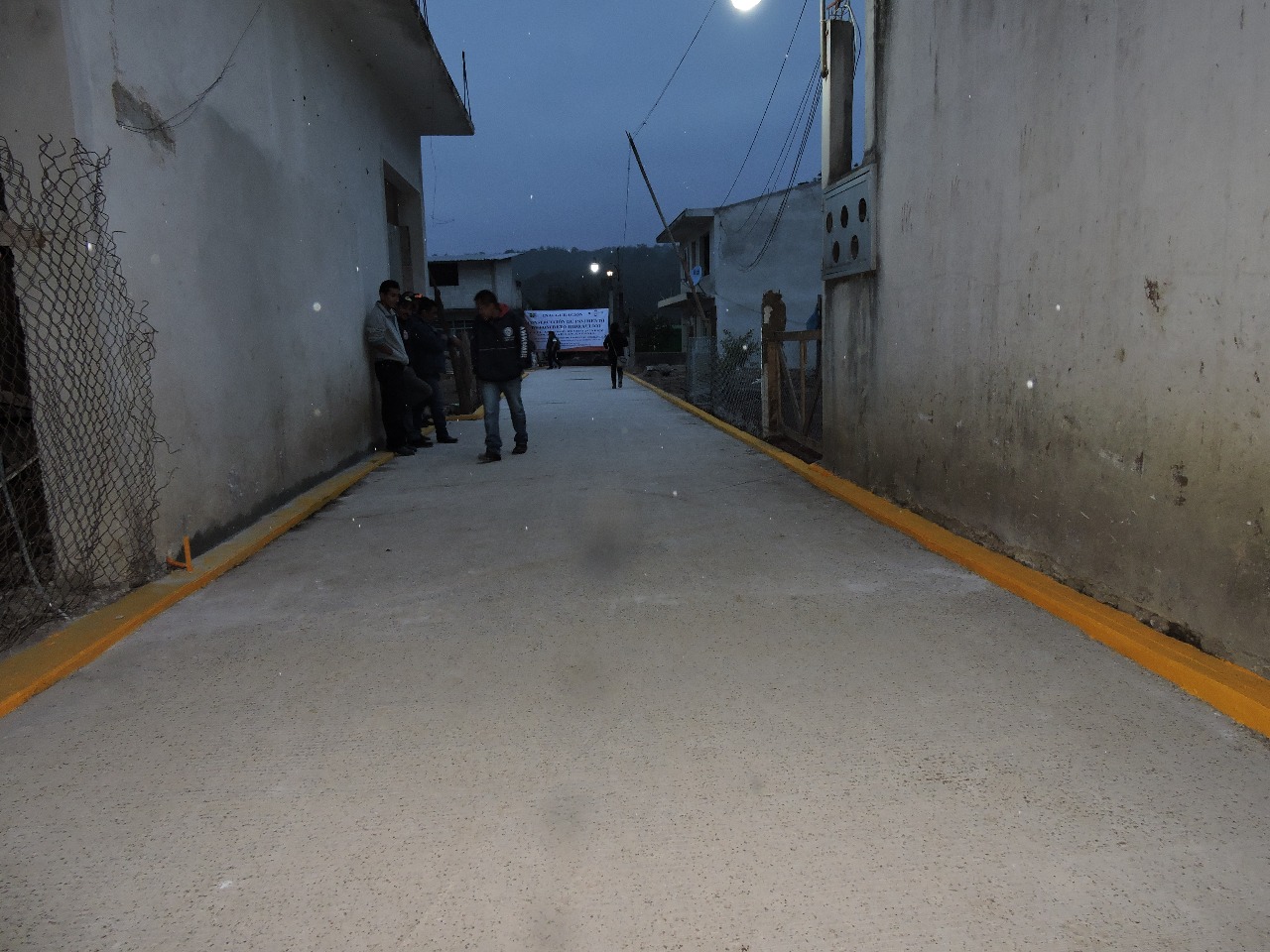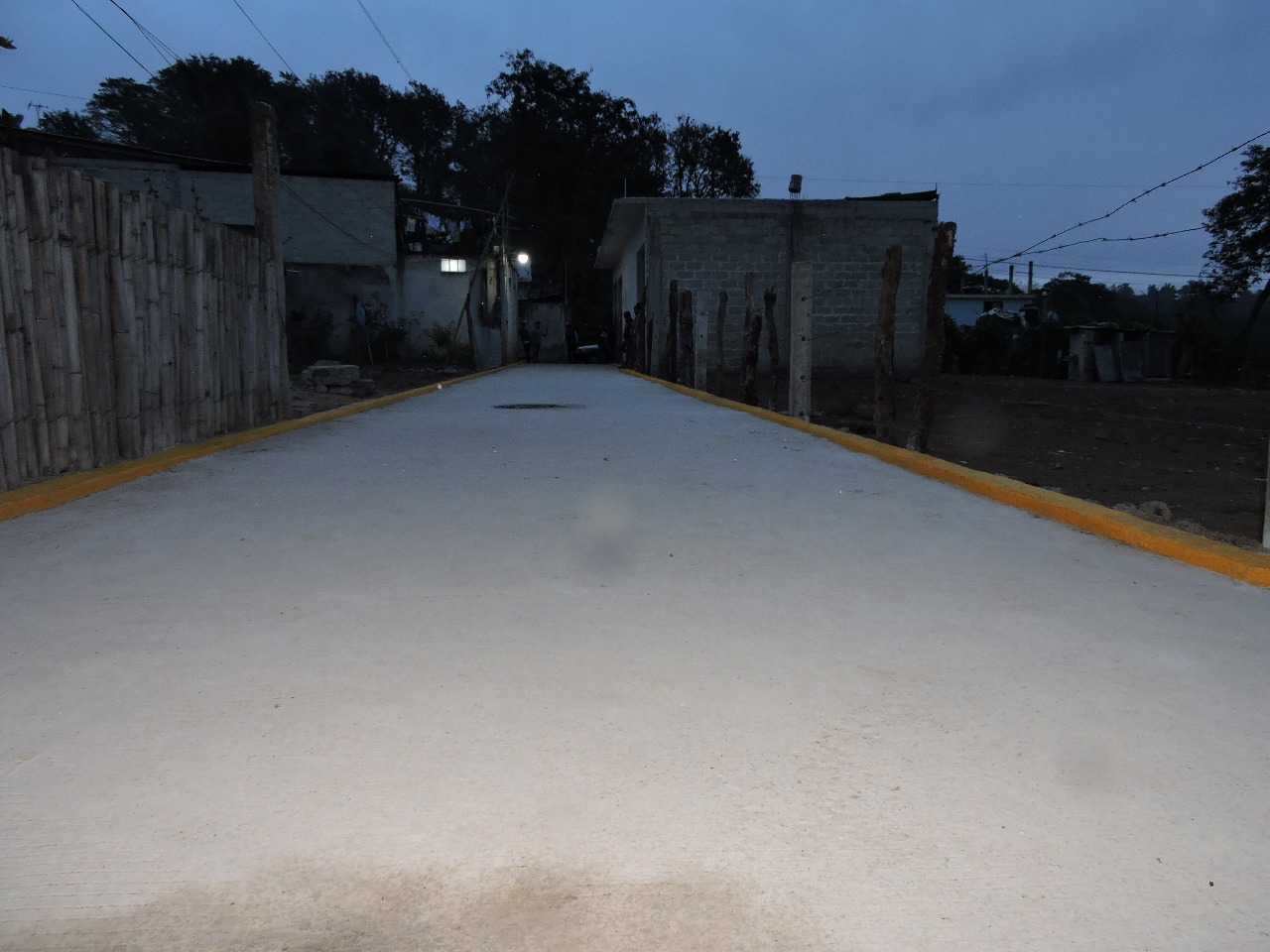 Dicha obra beneficia a más de 60 Vecinos de manera directa, y a toda la Comunidad de manera indirecta, y consta de pavimentación con concreto hidráulico, drenaje sanitario, pozos de visita de tipo común y registros sanitarios.
