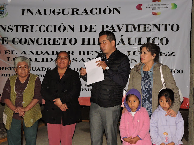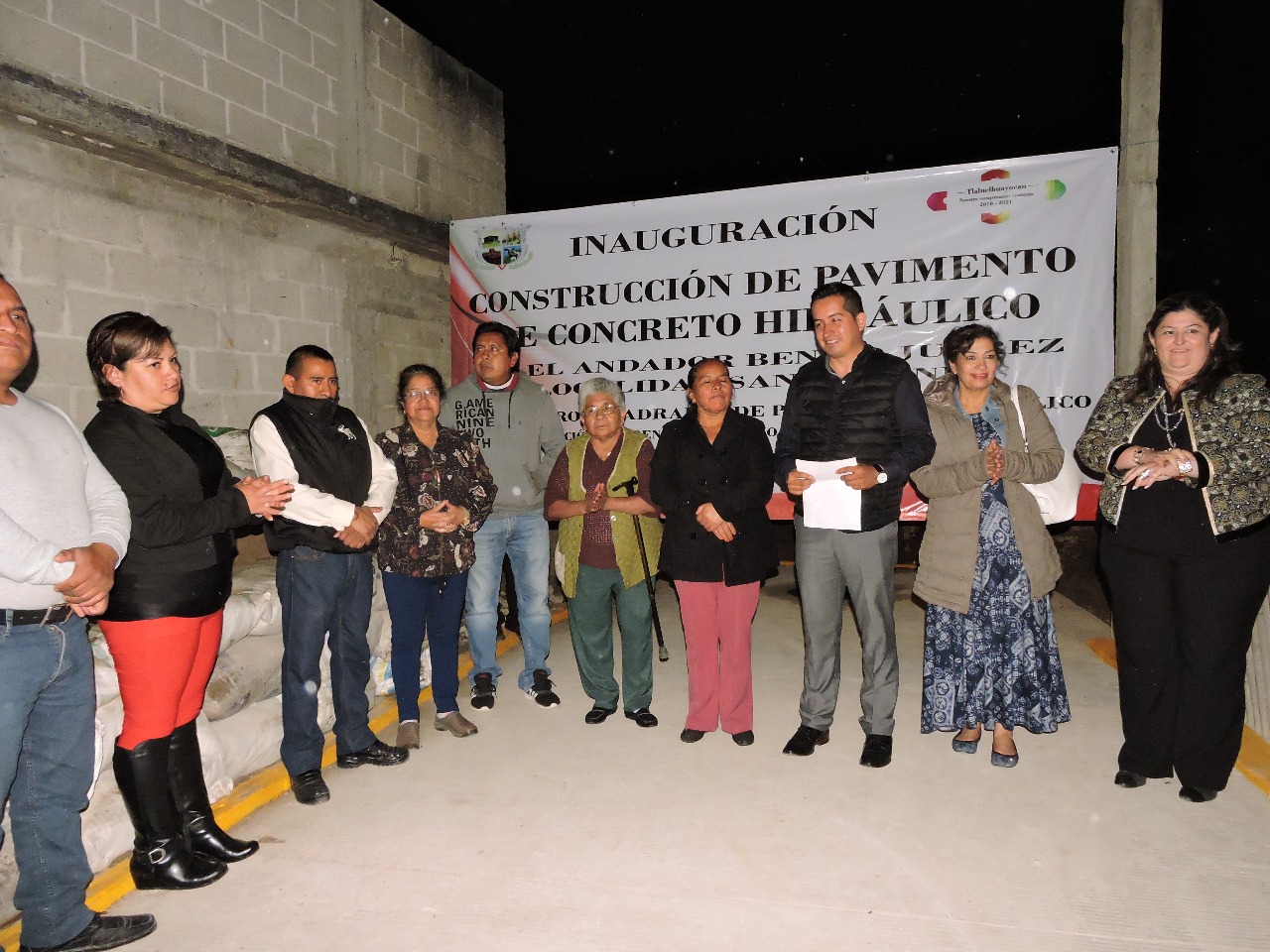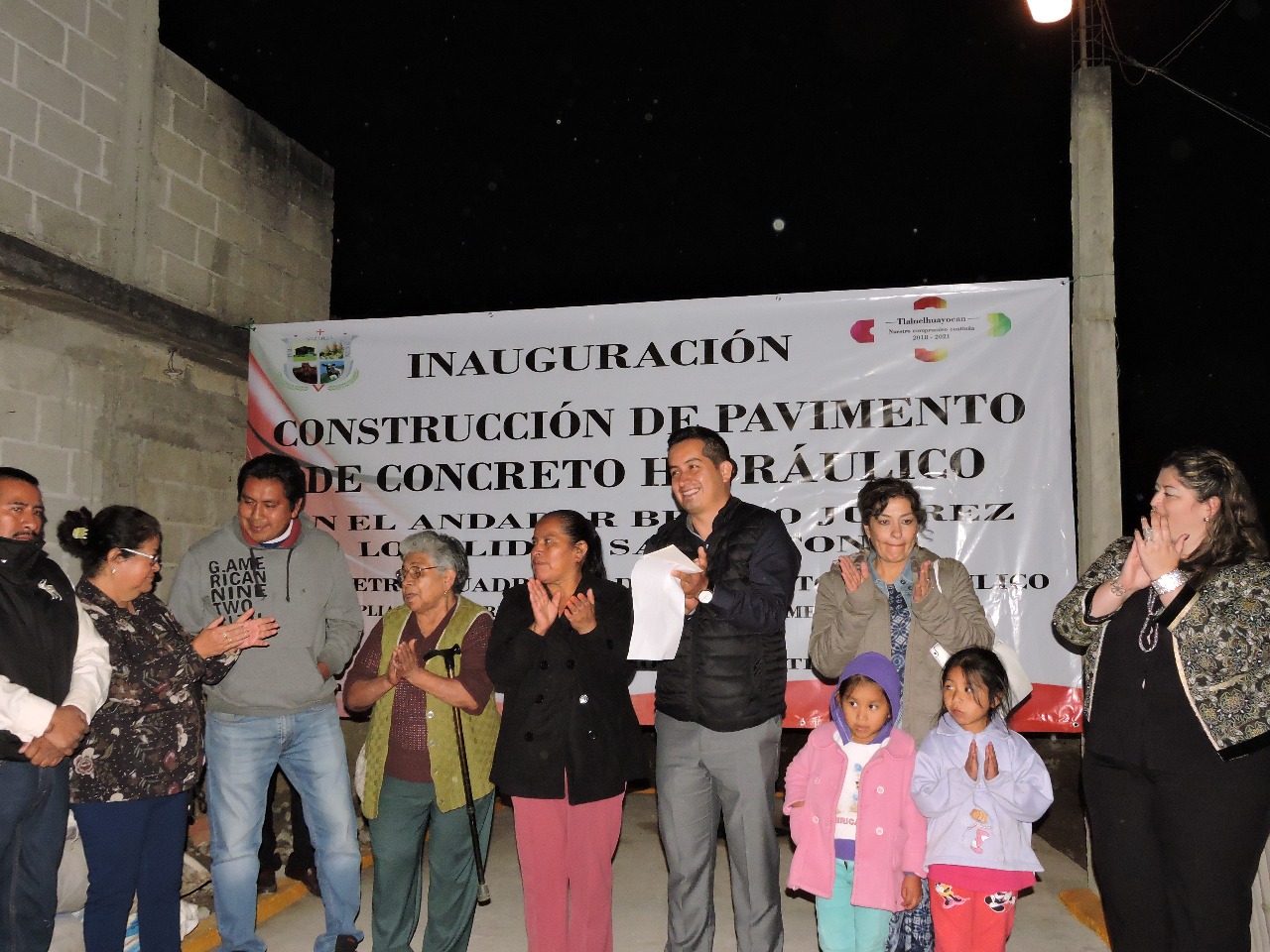 Dando continuidad a las acciones de beneficio social, e impulsando el desarrollo de las comunidades de Tlalnelhuayocan, el Alcalde David Ángeles Aguirre, acompañado por el Cabildo local, la Síndica Apolonia Domínguez Hernández y la Regidora Aurea Gerón Contreras, así como la Presidenta del DIF Municipal Rosario Aguirre Iturralde, colaboradores y vecinos de la población de San Antonio, inaugura el “Andador Benito Juárez”.