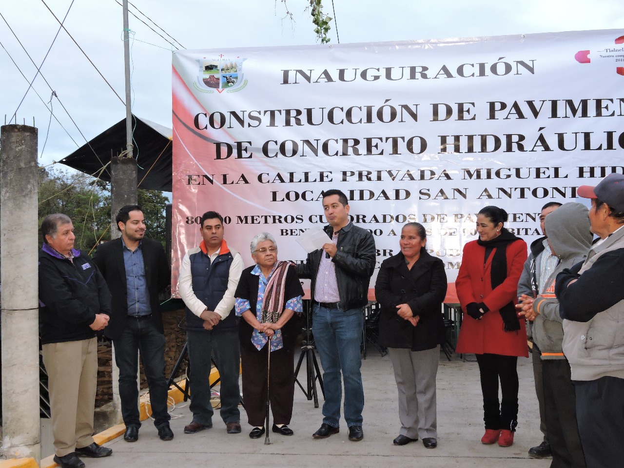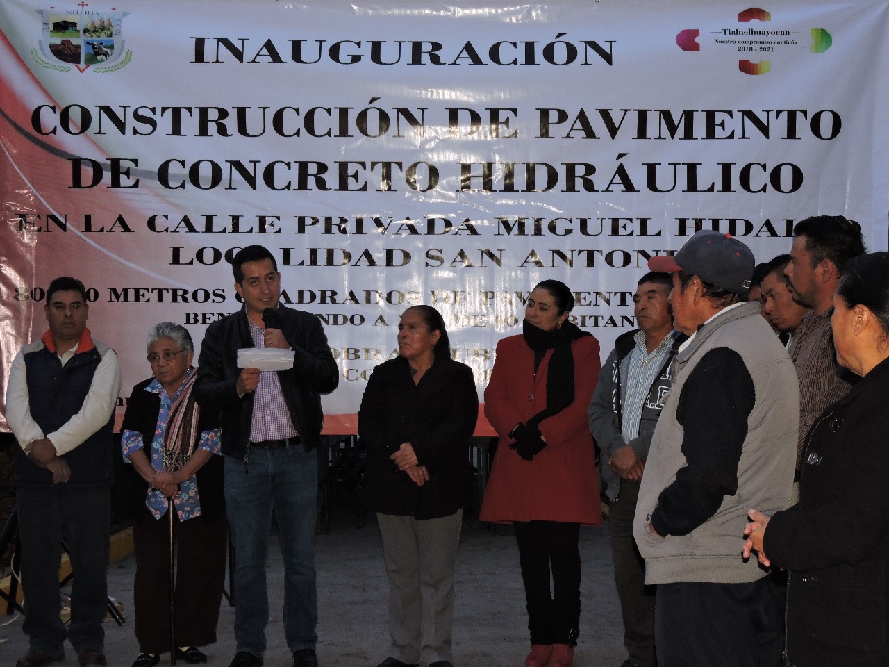 Refrendando la continuidad al compromiso que une a nuestro Municipio, el Alcalde de Tlalnelhuayocan, David Ángeles Aguirre inaugura obras todas las semanas desde el inicio de su mandato, tocando nuevamente en la Comunidad de San Antonio, del Municipio en comento, donde se entregó a la sociedad la Privada “Miguel Hidalgo”.