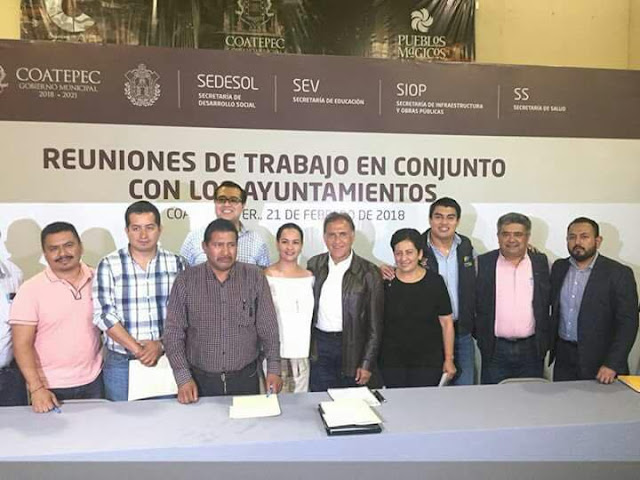"Por la tarde asistí a la reunión de trabajo con el Gobernador del Estado Miguel Ángel Yunes Linares y Alcaldes de Municipios vecinos, donde le manifesté las principales necesidades de nuestro Municipio en; Vías de comunicación, Salud, Educación y Desarrollo Social"