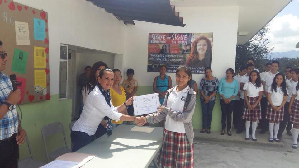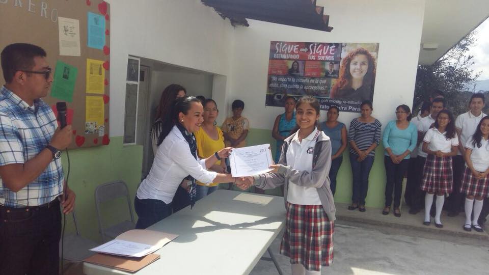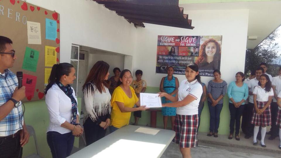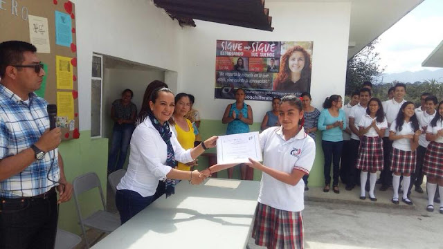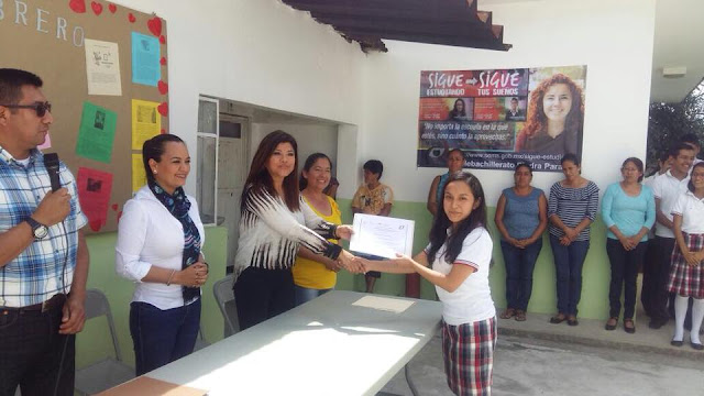 La alcaldesa de Cosautlán, la Ing. Alicia Valdivia Vargas, acudió al plantel del TEBAEV de la comunidad Piedra Parada, entregó reconocimientos a los alumnos por su excelente desempeño académico.