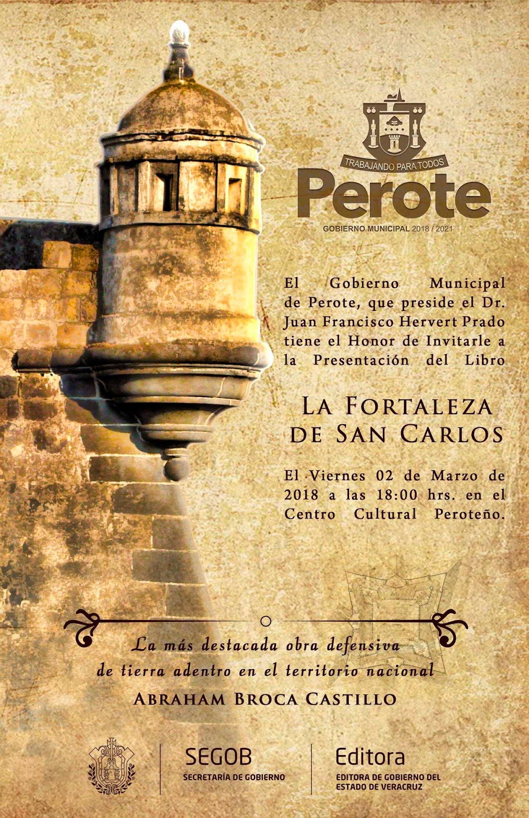 El Gobierno Municipal de Perote, tiene el honor de invitarle a la presentación del libro "LA FORTALEZA DE SAN CARLOS"