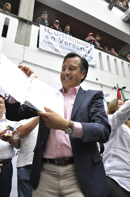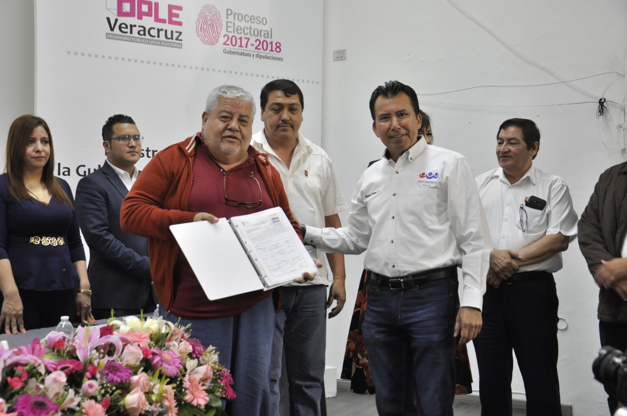 Cuitláhuac García Jiménez se registró ante el Organismo Público Local Electoral como candidato de la coalición MORENA, PES y PT, llamada “Juntos Haremos Historia” al gobierno de Veracruz.
