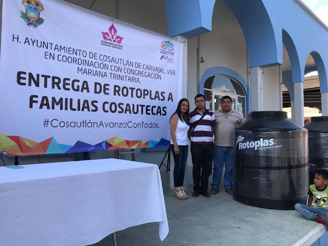 La alcaldesa Alicia Valdivia Vargas realizó la entrega de 135 rotoplas a igual número de familias de la congregación Mariana Trinitaria perteneciente al municipio de Cosautlán.