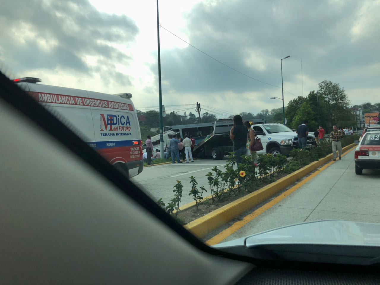 Fuerte accidente en la Carretera Xalapa-Coatepec, tras choque de un camión de pasajeros de la linea Excelsior y un auto particular.