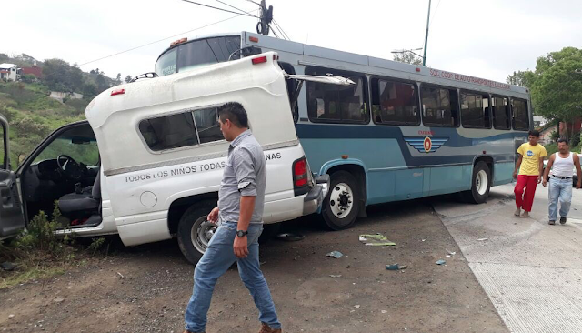 Aparatoso accidente entre autobus de la línea Excélsior y camioneta
