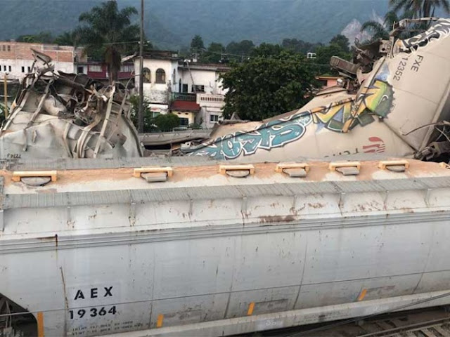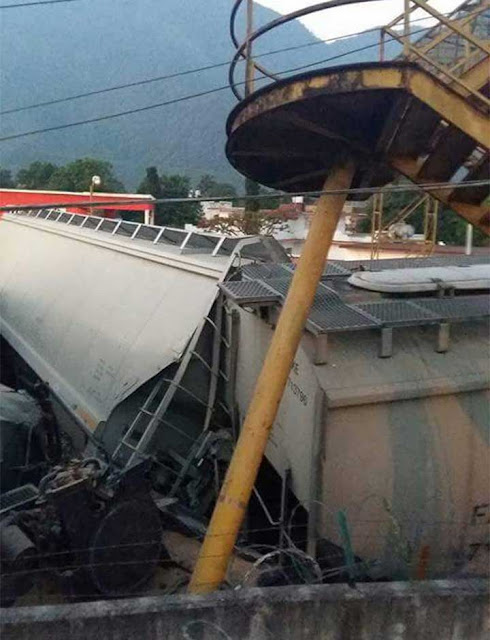 Dos trenes chocaron de frente y al menos 17 tolvas salieron de las vías al interior de los patios de maniobras de Ferrosur en Río Blanco en la zona central de Veracruz.