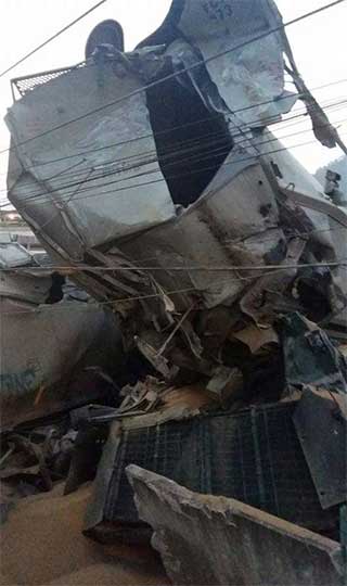 El impacto entre las locomotoras generó daños en tres postes de servicio de energía eléctrica, un puente peatonal y unas viviendas.